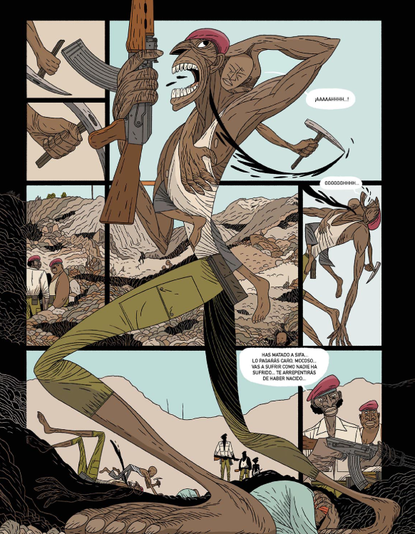 Visualmente, el libro es una revolución. Sergio García Sánchez, catedrático de dibujo, utiliza una composición de página que rompe con la viñeta tradicional para crear "mapas narrativos". El arte no solo ilustra la historia, sino que la expande: los paisajes africanos son exuberantes y peligrosos, y la narrativa visual fluye como un río que arrastra al protagonista. El color de Lola Moral termina de redondear una atmósfera que oscila entre la belleza natural del continente y la suciedad moral de la explotación humana.